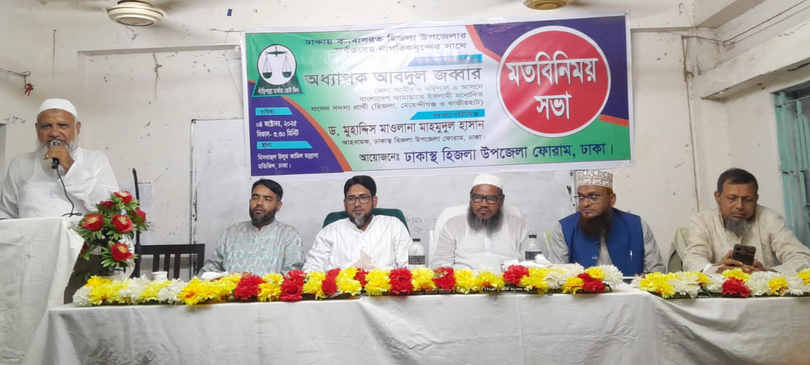 শনিবার (৪ অক্টোবর) বিকাল ৪ টায় মিছবাহুল উলুম কামিল মাদ্রাসা, মতিঝিলে অনুষ্ঠিত সভায় সভাপতিত্ব করেন ঢাকাস্থ হিজলা উপজেলা ফোরামের আহ্বায়ক বিশিষ্ট ইসলামী স্কলার ড. মুহাদ্দিস মাওলানা মাহমুদুল হাসান, সঞ্চালনা করেন বিশিষ্ট ব্যাংকার মোঃ তসলিম উদ্দিন।