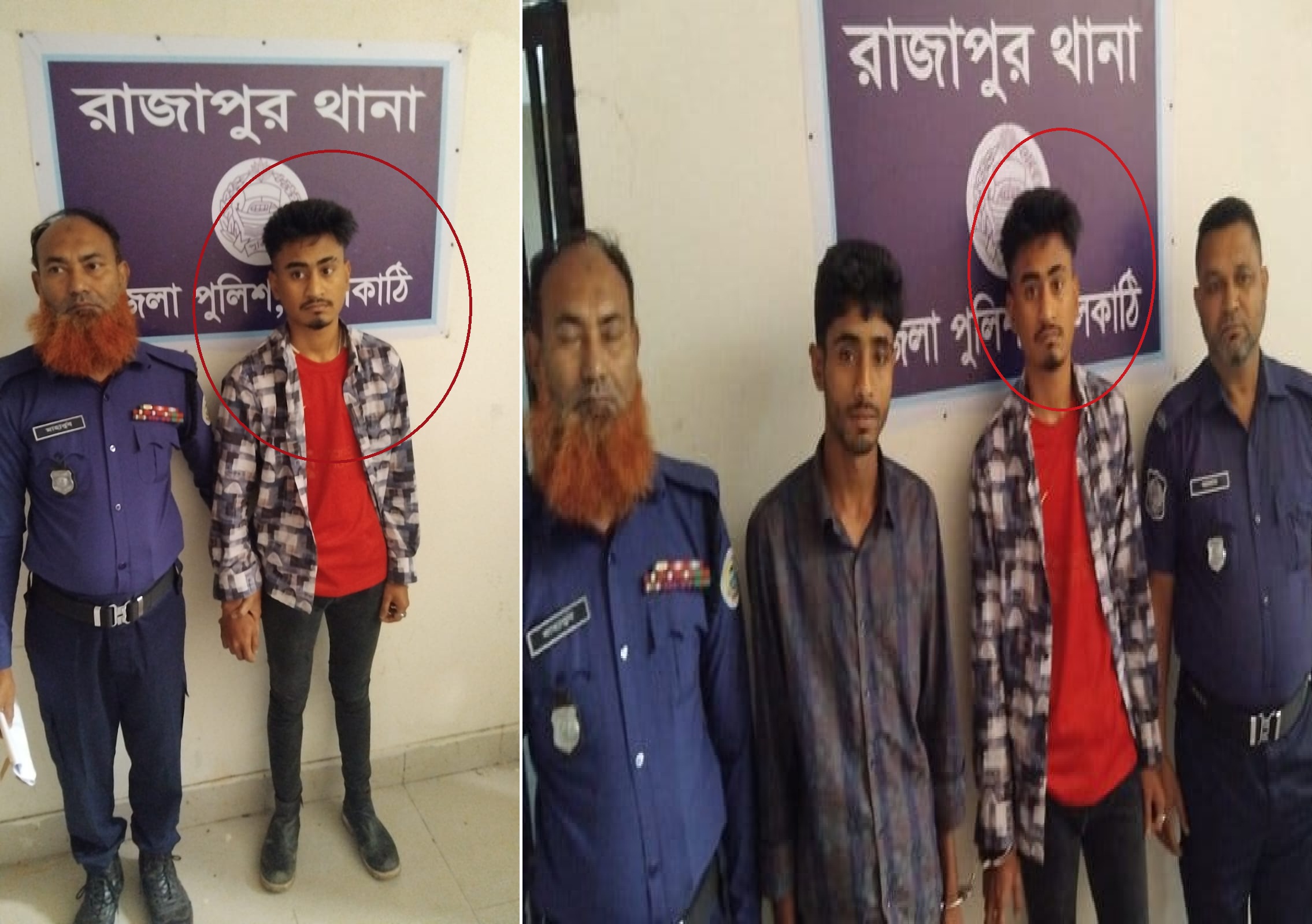 গ্রেফতারকৃতরা হলেন— রাজাপুর উপজেলা পরিষদের সাবেক মহিলা ভাইস চেয়ারম্যান আফরোজা আক্তার লাইজুর ছেলে, কিশোর গ্যাং গ্রুপের প্রধান এবং রাজাপুর উপজেলা ছাত্রলীগের বিজ্ঞান ও প্রযুক্তি বিষয়ক সম্পাদক মো. জায়েদ জোহা খান (১৮) এবং কেওতা এলাকার মো. ইমন হাসান (২০)।
